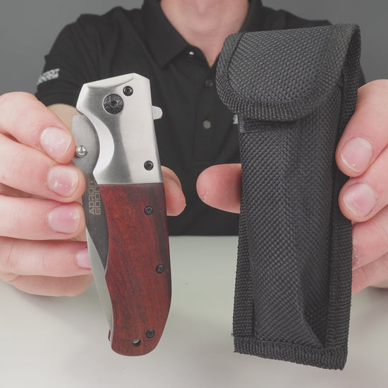 De AdroitGoods Nova X48 opent een wereld van onbegrensde mogelijkheden voor iedereen die op zoek is naar veelzijdigheid en prestaties in een zakmes. Dit stijlvolle en functionele gereedschap is ontworpen om aan al je behoeften te voldoen, ongeacht waar het leven je naartoe brengt. Of je nu een avonturier bent die de wildernis verkent, een handige klusser die projecten aanpakt of gewoon iemand die altijd voorbereid wil zijn, de Nova X48 staat altijd paraat. Met zijn scherpe mes, gebruiksvriendelijk ontwerp en duurzame materialen, is dit zakmes een veelzijdige metgezel voor elke situatie. De Nova X48 biedt niet alleen prestaties, maar ook stijl. Het opvallende ontwerp met eikenhouten finish en Titanium Nitride (TiN) coating maakt dit zakmes tot een pronkstuk dat indruk zal maken.