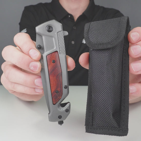 - Eikenhouten Afwerking:De elegant gelakte eikenhouten afwerking geeft dit zakmes een onderscheidende en verfijnde uitstraling.